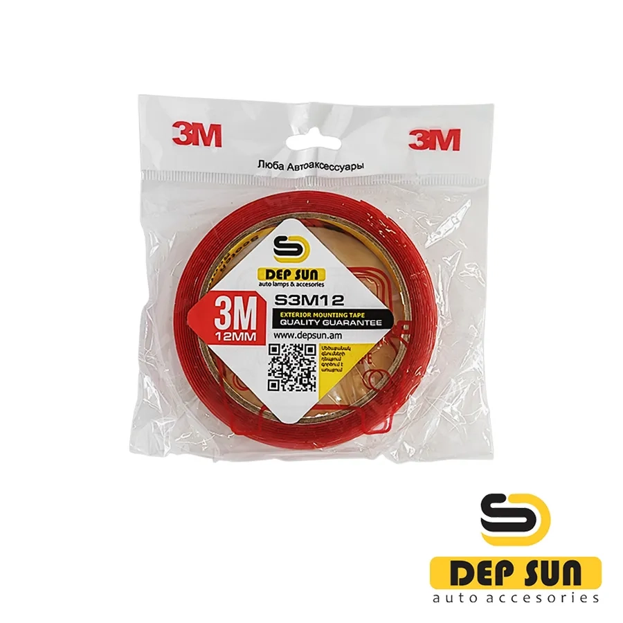 • 3M երկկողմանի ժապավենը երկկողմանի ինքնասոսնձվող ժապավեն է, որը հիմնված է փրփրված պոլիէթիլենի վրա: Պատրաստված է բարձրորակ նյութերից, որոնք դիմացկուն են ուլտրամանուշակագույն ճառագայթման, խոնավության և քիմիական նյութերի նկատմամբ: Այն նաև ունի ցածր ջրաթափանցելիություն և ջերմային հաղորդունակություն, բարձր աղմուկի կլանում և էկոլոգիապես մաքուր է: