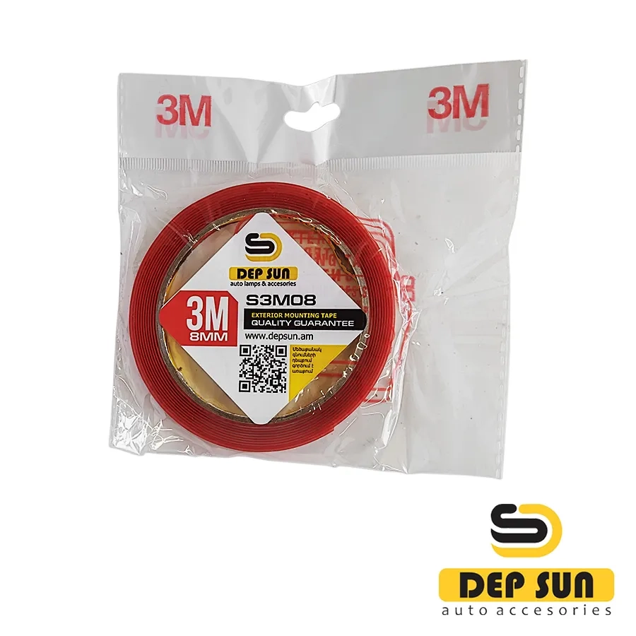 • 3M երկկողմանի ժապավենը երկկողմանի ինքնասոսնձվող ժապավեն է, որը հիմնված է փրփրված պոլիէթիլենի վրա: Պատրաստված է բարձրորակ նյութերից, որոնք դիմացկուն են ուլտրամանուշակագույն ճառագայթման, խոնավության և քիմիական նյութերի նկատմամբ: Այն նաև ունի ցածր ջրաթափանցելիություն և ջերմային հաղորդունակություն, բարձր աղմուկի կլանում և էկոլոգիապես մաքուր է: