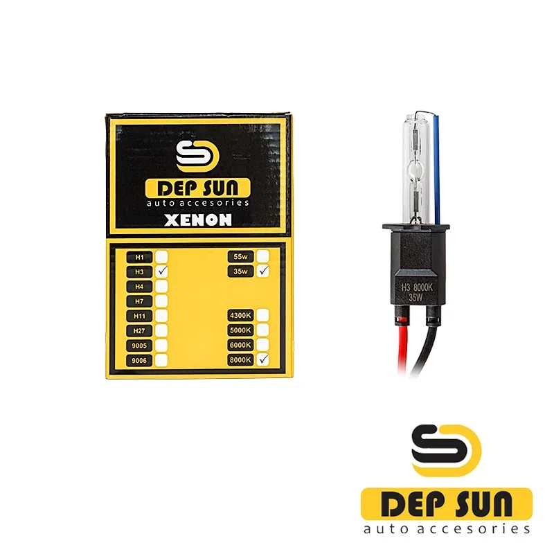 Նոր սերնդի Depsun-ի քսենոնային լամպերը հատուկ նախագծված լամպով և մետաղական հիմքով ապահովում են կայուն աշխատանք ողջ ծառայության ընթացքում, արձակում են մինչև +300% ավելի շատ լույս, քան հալոգեն լամպերը: Գույնի ջերմաստիճանը 8000K, լուսավոր հոսքը 4700Lm: Արտադրված է բարձր ճշգրտության սարքավորումների վրա՝ բոլոր ստանդարտներին համապատասխան: