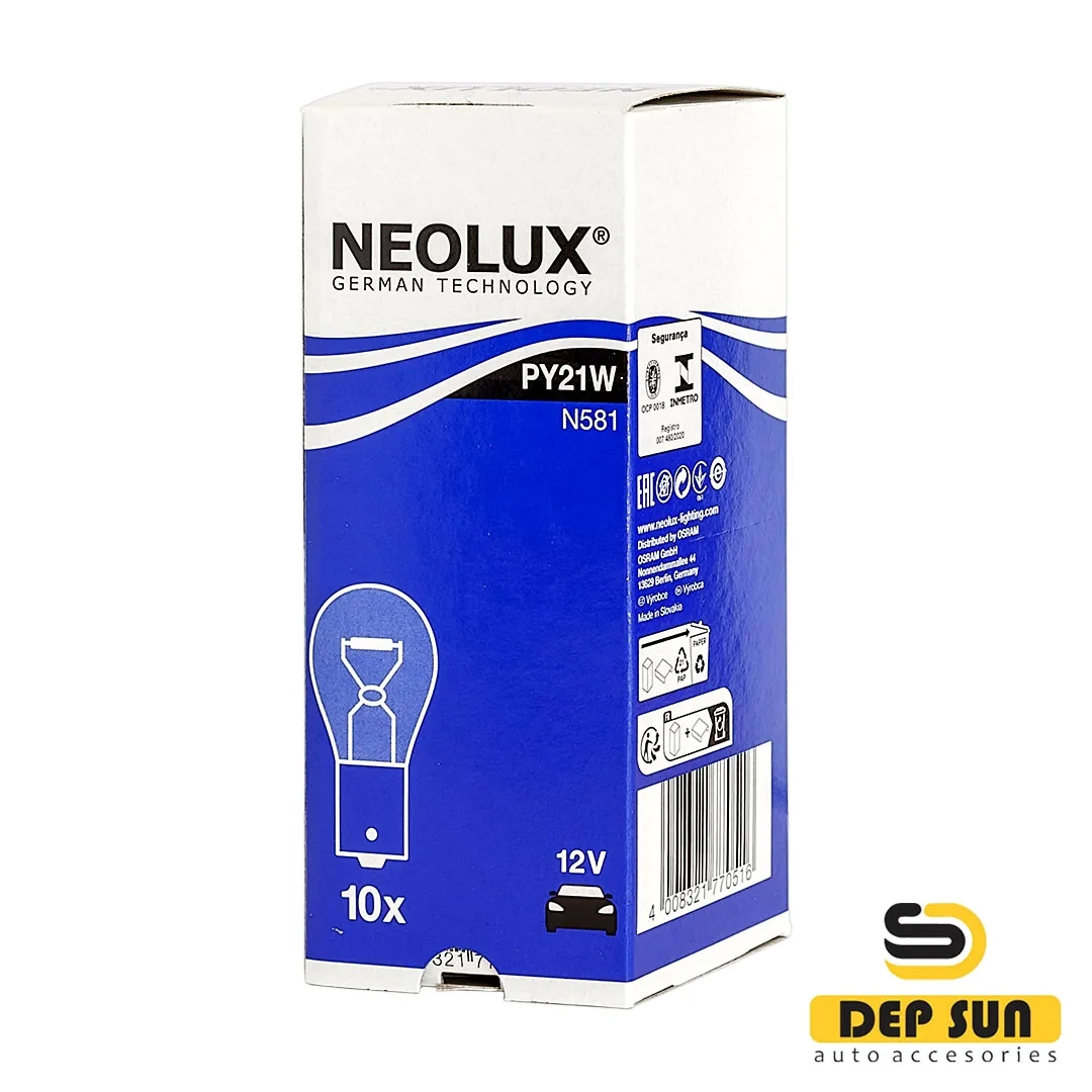 Standart Amber շարքի հայտնի Neolux ընկերության մեքենաների շիկացած լամպերը դեղին լույսի ստանդարտ աղբյուր են: Դրանք մատակարարվում են 10 հատ ստվարաթղթե տուփի մեջ և նախատեսված են 24 վոլտ բեռնատարներում տեղադրելու համար։ 21 Վտ հզորությամբ լույսի աղբյուրի այս տեսակը պատկանում է PY21w չափսին և արձակում է տաք սպիտակ լույս՝ բարելավված պայծառությամբ։ Նրանք ապահովում են անվտանգ և վստահ մեքենա վարել՝ մառախուղի և վատ եղանակի լավ տեսանելիության շնորհիվ: Շիկացման լամպերը առանձնանում են իրենց արտադրության բարձր որակով և ծառայության ժամկետով: Սա գերազանց տարբերակ է ստանդարտ ավտոմոբիլային լուսավորության աղբյուրները մատչելի գնով փոխարինելու համար: Դրանք ECE-ի կողմից հաստատված են և ճանապարհային օրինական: