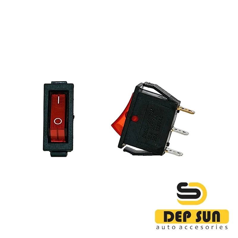 • 250V 16A (3s) ON-OFF կարմիր կոճակը հետին լույսով նախատեսված է մինչև 250 Վ լարման AC էլեկտրական սխեմաները միացնելու համար: Ճոճվող անջատիչները օգտագործվում են որպես տարբեր էլեկտրական սարքավորումների բաղադրամասեր (սնուցման ֆիլտրերում և երկարացման լարերում, աուդիո սարքավորումներում, սնուցման սարքերում, էլեկտրական կայանքներում տարբեր ոլորտներում և շատ այլ վայրերում): Այս բանալին ունի երկու դիրք: Գործողության սկզբունքը հիմնված է բանալին դիրքերից մեկին տեղափոխելու վրա: Ցանկալի դիրքին անցնելու համար անհրաժեշտ է որոշակի ուժ կիրառել բանալին: Տեղադրումն իրականացվում է առանց պտուտակների օգտագործման հարթ պանելների վրա 0,8 մմ-ից 3 մմ հաստությամբ: Կոնտակտները միացված են 6,6 մմ հարթ տերմինալի միջոցով կամ զոդման միջոցով: