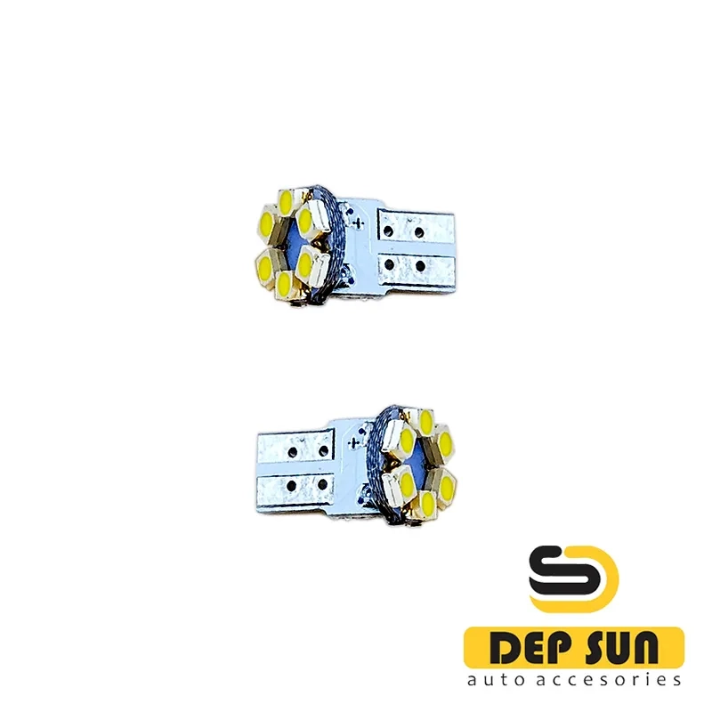 • Светодиодные или диодные автомобильные яркие led лампочки w5w t10 12v с обманкой отлично подойдут для использования в габариты, плафон салона, салонный свет, задние ходовые огни, подсветку номера, поворотники, стоп-сигнал, освещение багажника, дхо, дневные ходовые огни. Автотовар значительно ярче стандартных ламп накаливания и подходит на многие автомобили. Цветовая температура лампы 6000К. Лампы оснащены чипом 1210. Лампы оснащены обманкой, при этом нельзя гарантировать исчезновение ошибки, так как невозможно предусмотреть особенности каждой модели авто.