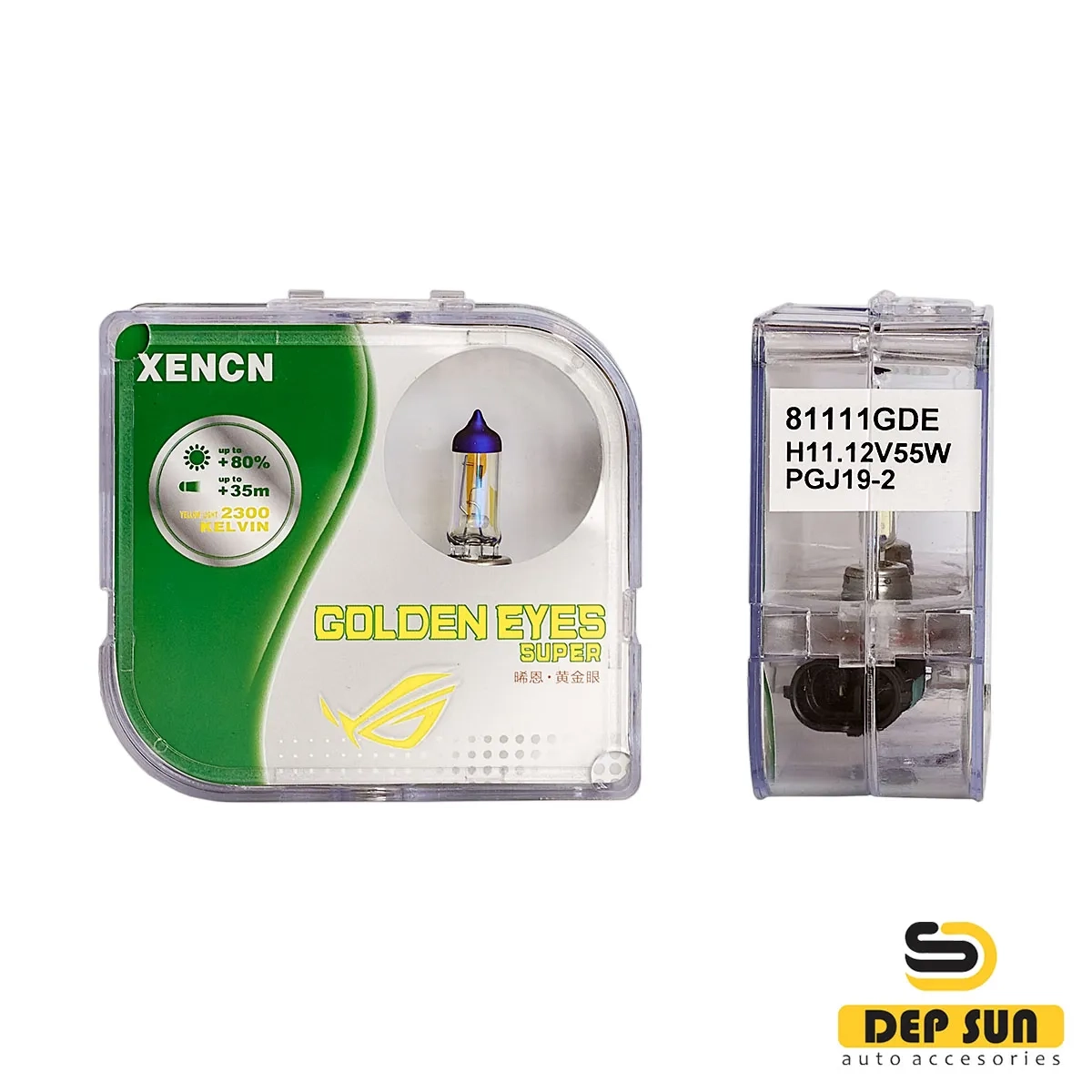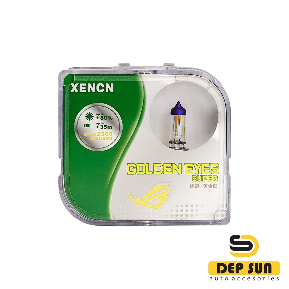 • Автомобильные галогенные лампы Xencn серии "GOLDEN EYES SUPER" обеспечивают оптимальную видимость в любую погоду, по сравнению со стандартными аналогами. Лампы со специальным интерференционным покрытием обеспечивают на 80% больше света на дороге в самых сложных погодных условиях.Это одни из самых популярных и надежных автомобильных ламп. Они производятся компанией Xencn, лидером в области автомобильного освещения. Хорошая и четкая видимость для вашего автомобиля со галогенной лампой Xencn.