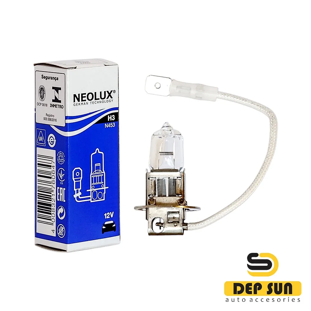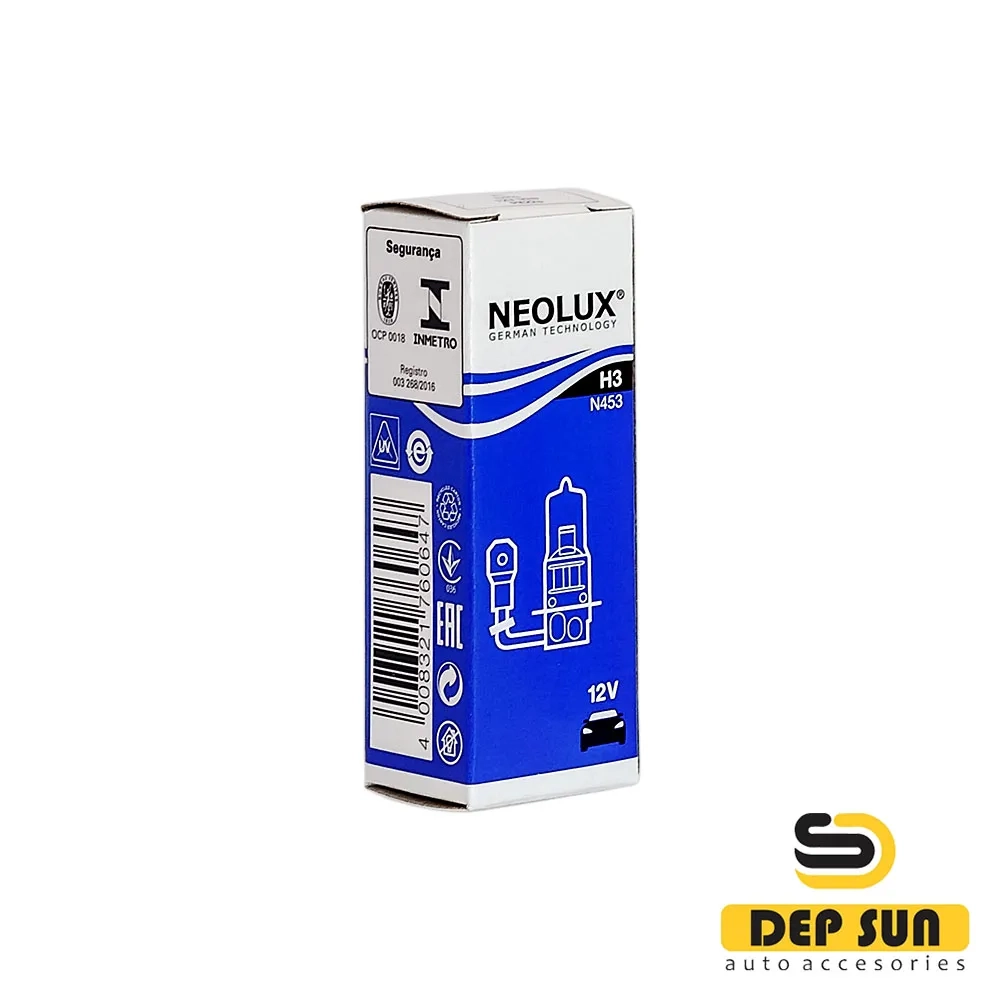 Halogen headlight bulbs NEOLUX STANDARD N453 - NEOLUX bulbs provide perfect illumination of the road and excellent visibility - for all road users and in all conditions. Specifications: Application areas: Headlights. Nominal voltage: 12.0 V. Nominal power: 55.00 W. Color temperature: 3200 K. Base: PK22s. ECE category: H3.