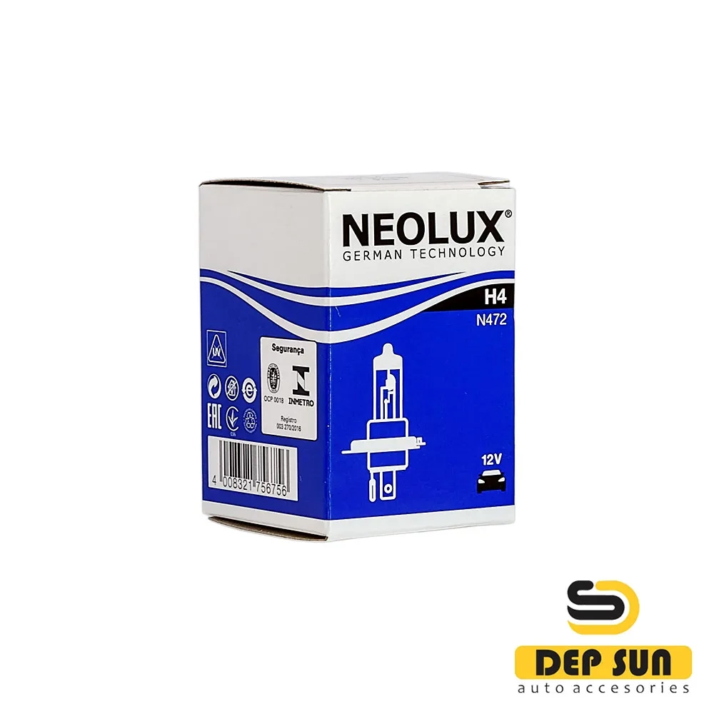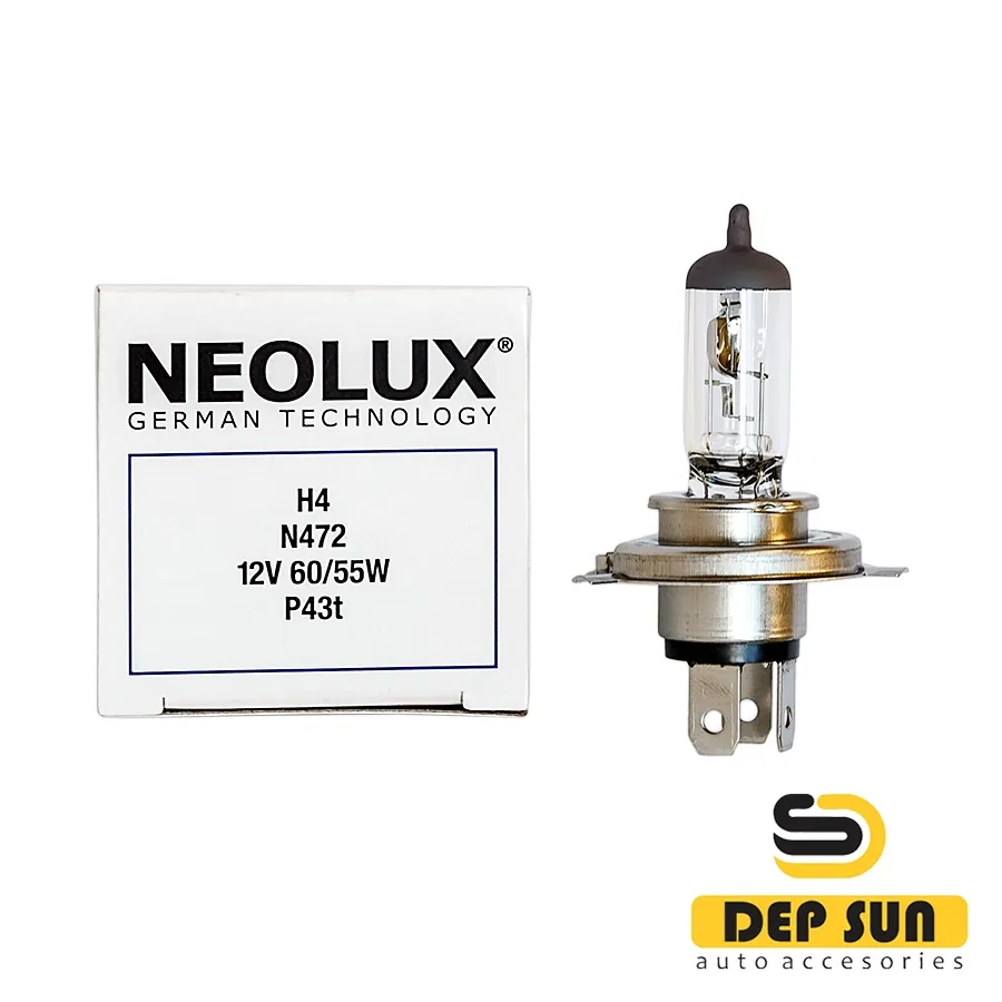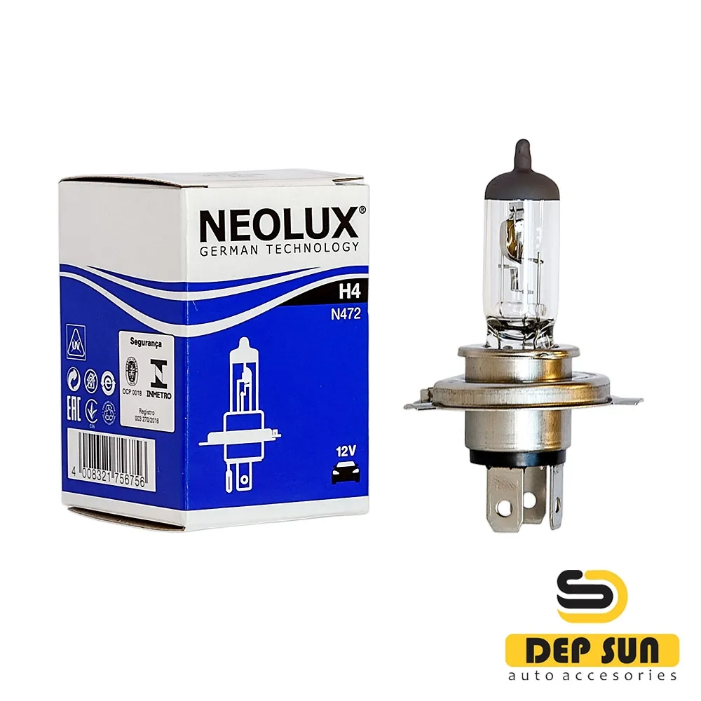 The N472 60/55W 12V P43t halogen bulb from NEOLUX is a H4 halogen bulb for cars. Good and clear visibility for your car with the standard H4 halogen bulb from Neolux.