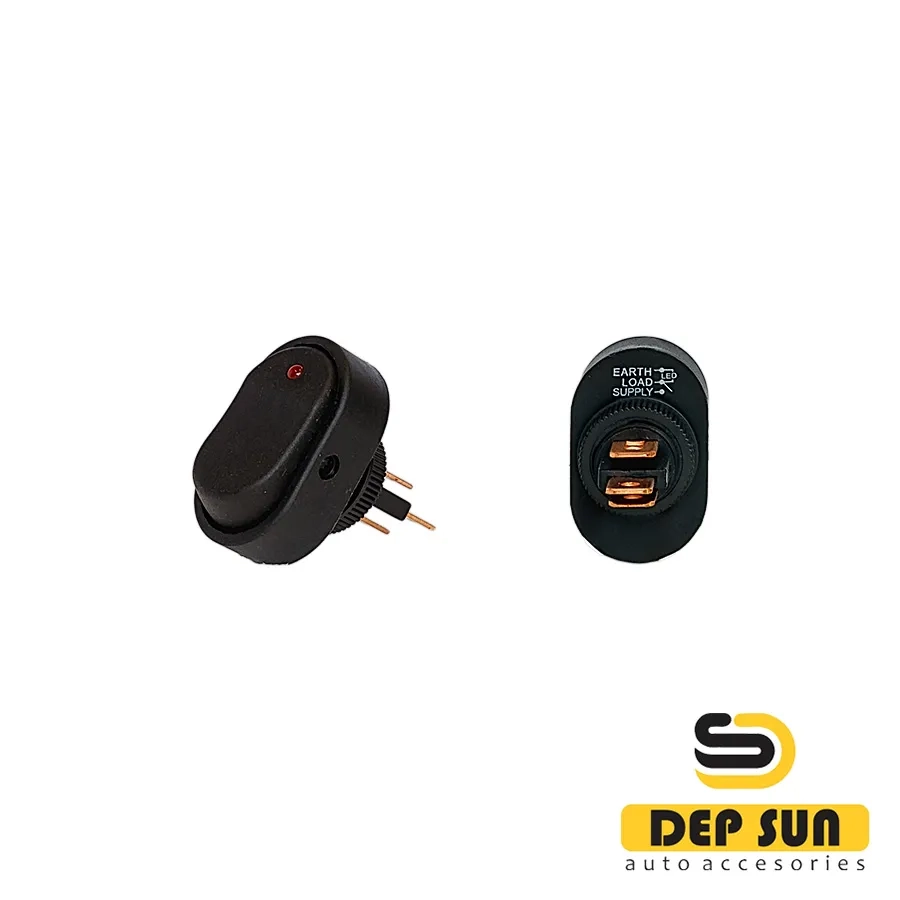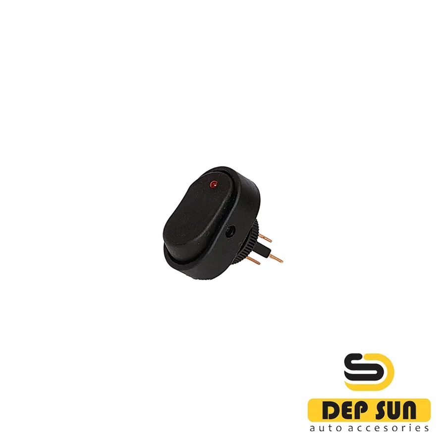 Switch 12V 20A (3s) ON-OFF black OVAL with green LED backlight is designed for switching electrical circuits. Key (rocker) switches are used as components of various electrical equipment (in audio equipment, power supplies, electrical installations in various industries, cars, and many other places), with a voltage of no more than 12V. Such a switch has two positions and a specific oval key shape. The principle of operation is based on moving the key to one of the positions. To switch to the desired position, you need to apply some force to the key. Installation is carried out without the use of screws on flat panels with a thickness of 0.8 mm to 3 mm in a round hole. The contacts are connected using a flat terminal or by soldering.